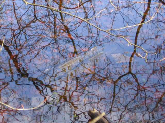 Das hier Brassen bereits am laichen waren, schloss ich jedoch aus, da die charakteristischen Rückenflossen gefehlt haben. Hier lagen eine Hechtdame und Ihr Auserwählter nebeneinander. Wenig