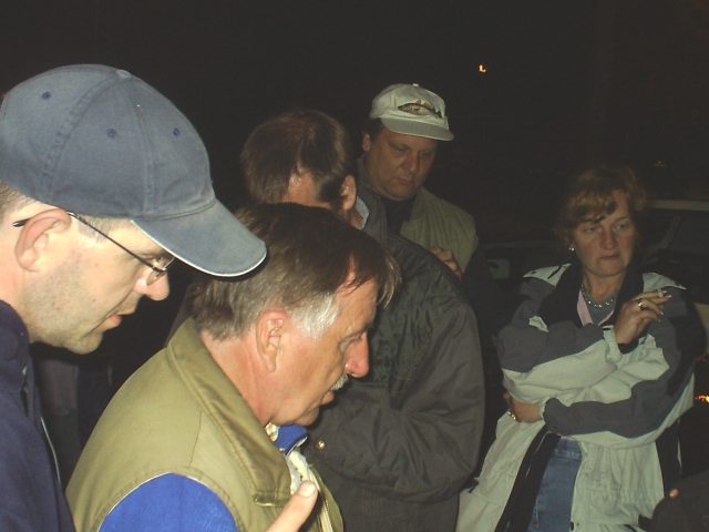 | Am Ende wurde die Fänge natürlich genau dokumentiert. Jens, Andreas und Marion (diesmal gut zu erkennen) schauten Heinrich dabei mehr oder weniger genau über die Schulter...... |